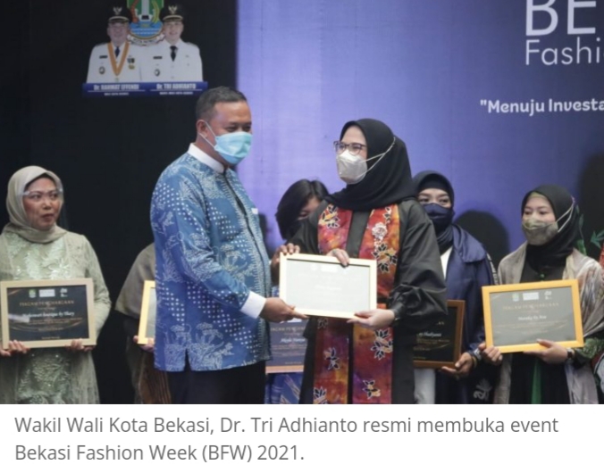 KOTA BEKASI—Bertempat di Atrium Lagoon Avenue (LAVE) Mall, Wakil Walikota Bekasi Dr Tri Adhianto resmi membuka event Bekasi Fashion Week (BFW) 2021 yang diusung oleh Dinas Penanaman Modal dan Pelayanan Terpadu Satu Pintu (DPMPTSP) Kota Bekasi pada Jumat (29 Oktober 2021.