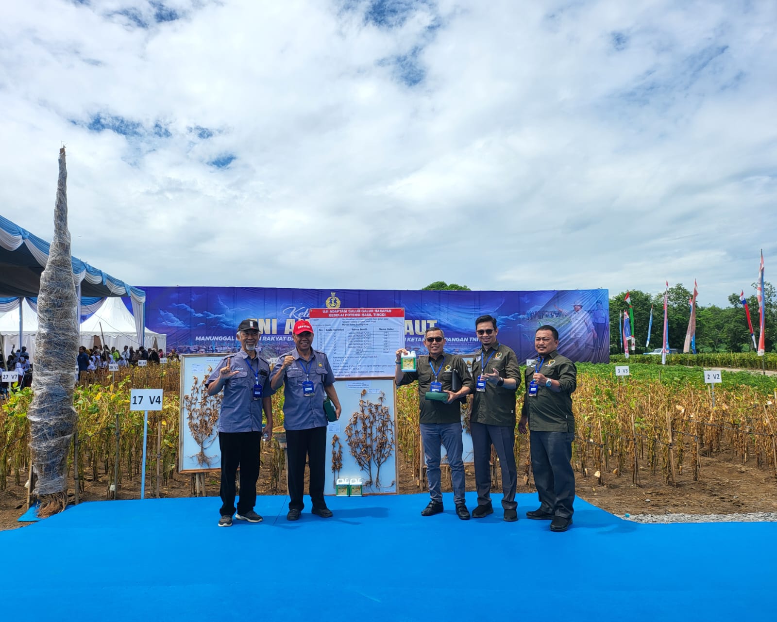 Berbagai teknologi pertanian termasuk hasil-hasil produksi pasca panen kedelai turut digelar yakni, benih kacang kedelai putih dan hitam, susu soya, kecap, keripik dan produk-produl turunan lainnya seperti tahu dan tempe. Giat gersebut juga menghadirkan 5000 siswa sekolah menengah pertama kelas 7, 8 dan kelas 9 untuk menikmati Makan Bergizi Gratis dengan lauk hasil olahan Kedelai disaksikan oleh Bapak Menteri Pertahanan RI dan Menteri Pertanian RI.