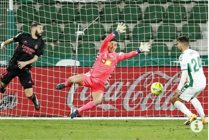 Penyerang Elche Lucas Boye hampir menciptakan gol ketika upayanya membentur tiang gawang. Sebaliknya dua bek Real Madrid Dani Carvajal dan Sergio Ramos memaksa kiper Edgar Badia melakukan penyelamatan gemilang yang menghindarkan timnya dari kekalahan.