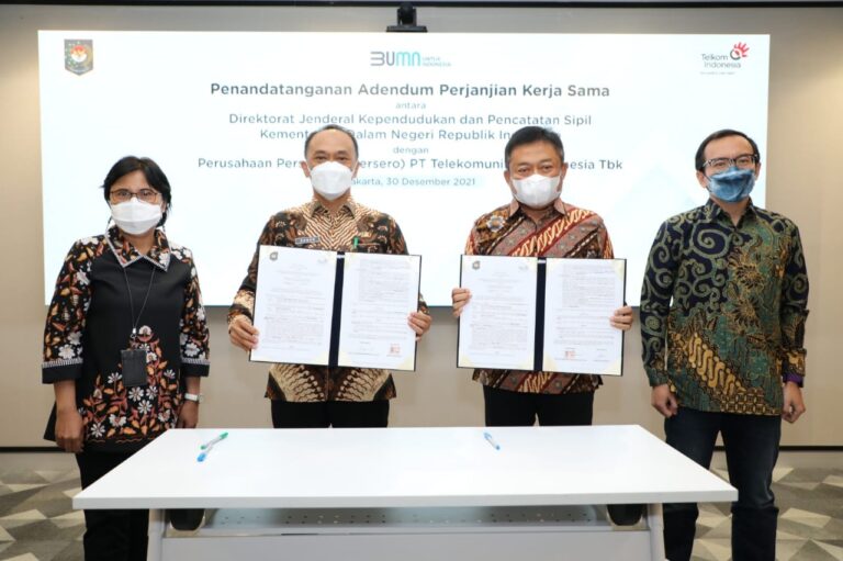 Hadir dalam kegiatan tersebut Direktur Jenderal Kependudukan dan Pencatatan Sipil Kementerian Dalam Negeri Prof Dr Zudan Arif Fakrulloh, SH, MH, Direktur Utama Telkom Ririek Adriansyah, Direktur Consumer Service Telkom Venusiana, dan Direktur Digital Business Telkom M Fajrin Rasyid.