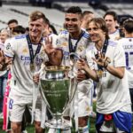 Pemain Real Madrid mengangkat tropi juara. (Instagram @mediamadrista) JAKARTA–Real Madrid keluar sebagai juara Liga Champions untuk ke-14 kalinya setelah mengalahkan Liverpool 1-0
