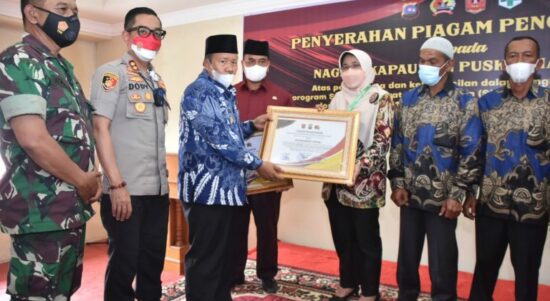 TILATANG KAMANG–Hebat Puskesmas Kapau, Kecamatan Tilatang Kamang, Kabupaten Agam, Sumatera Barat, dapat penghargaan dari Bupati Agam, karena berhasil mencapai vaksinasi 100 persen