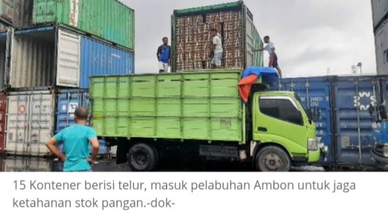 AMBON- Masyarakat di Ambon tidak perlu khawatir kekurangan telur di pasar. Pasalnya, pagi Jumat (14/5/2021) sebanyak 15 kontainer telur telah dibongkar dan