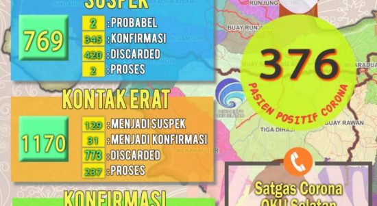 OKUS–Satgas Covid-19 di Kabupaten Ogan Komering Ulu (OKU) Selatan, Provinsi Sumatera Selatan, mencatat kasus positif Covid-19 meningkat mencapai 376 kasus selama pemberlakuan