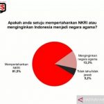 JAKARTA — Survei yang dilakukan Center for Political Communication Studies (CPCS) menunjukkan publik lebih setuju untuk mempertahankan NKRI, yakni mencapai 81,5 persen.
