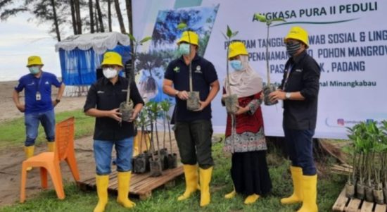 PADANG – Sebanyak 3.000 bibit mangrove rhizophora apiculata ditanam di tepian danau payau Pantai Pasir Jambak, Kelurahan Pasia Nan Tigo, Kecamatan Koto