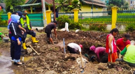 SOREANG – Pipa saluran air milik Perusahaan Umum Daerah (Perumda) Air Minum Tirtaraharja bocor, Minggu (2/5/2021). Akibatnya, sejumlah rumah warga di Sadu,