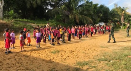 SINTANG — Untuk mengajarkan pola hidup sehat, prajurit Satgas Pamtas Yonif 407/Padma Kusuma mengajak anak-anak SD Negeri 08, untuk mengikuti kegiatan olahraga