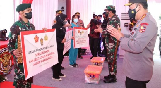 TANGERANG – Panglima TNI Marsekal Hadi Tjahjanto dan Kapolri Jenderal Listyo Sigit Prabowo meninjau langsung serbuan vaksinasi dan bakti sosial di Tangerang,