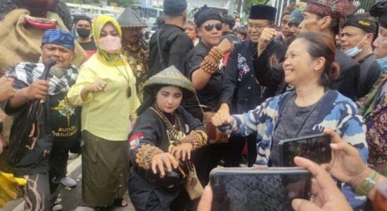 JAKARTA – Massa yang tergabung dalam Aliansi Masyarakat Sunda menggelar demo di depan gedung DPR RI, Jakarta Pusat, Rabu (26/1/2022). Sementara Koordinator