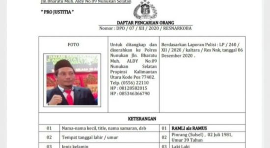 TANJUNG SELOR – Anggota DPRD Kabupaten Tana Tidung (KTT), Kalimantan Utara (Kaltara), berinisial R (39), menjadi buronon polisi menyusul terbitnya surat Daftar