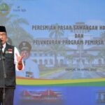 DEPOK–Gubernur Jawa Barat Ridwan Kamil meluncurkan program pemesanan minyak goreng bersubsidi melalui Aplikasi Sapawarga, di Kota Depok, Jumat (8/4/2022). Program yang digulirkan