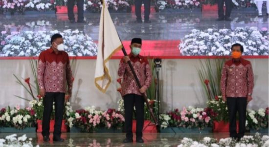 BABEL–Wakil Gubernur Kepulauan Bangka Belitung Abdul Fatah menerima Bendera Pataka Hari Kesetiakawanan Sosial Nasional (HKSN) sebagai tanda Provinsi Kepulauan Bangka Belitung menjadi