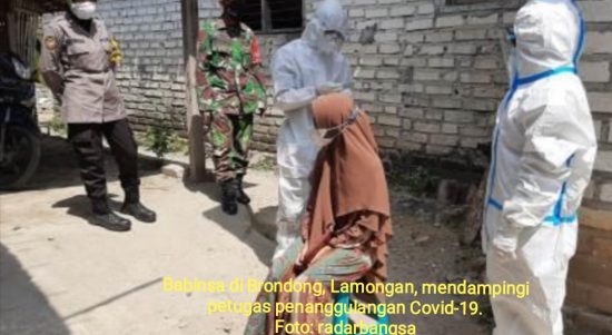LAMONGAN – Bintara Pembina Desa (Babinsa) jadi ujung tombak TNI-AD dalam upaya memutus penyebaran Covid-19 di wilayah binaan. Pihak TNI bersinergi dengan
