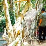 PANDEGLANG – Santri Pondok Pesantren (Ponpes) Tahfizd Quran Almapus di Kampung Kacapi Amis, Desa Alaswangi, Kecamatan Menes, Kabupaten Pandeglang, Banten, harus bergelantungan
