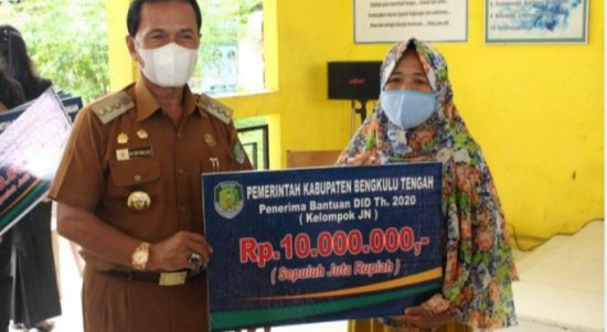BENGKULU – Penyerahan bantuan modal usaha yang bersumber dari Dana Insentif Daerah (DID) tambahan 2020 kepada kelompok penerima bantuan usaha dilakukan dalam