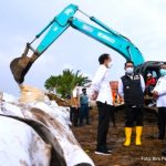 JAKARTA – Presiden RI Joko Widodo (Jokowi) meninjau perbaikan tanggul Sungai Citarum di Kecamatan Pebayuran, Kabupaten Bekasi, Jawa Barat, Rabu (24/02/2021). Tanggul