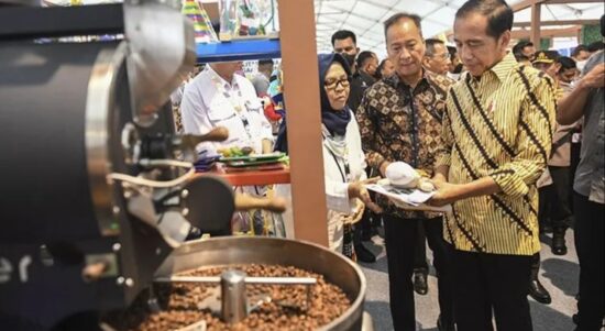 Presiden Joko Widodo meninjau produk dalam negeri yang dipamerkan pada Business Matching Produk Dalam Negeri 2023 di Istora Senayan, Jakarta, Rabu (15/3/2023).