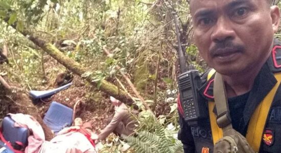 Tim SAR menunjukkan Kapolda Jambi Irjen Pol Rusdi Hartono terbaring berselimut mendapatkan perawatan petugas di perbukitan Kerinci, Provinsi Jambi, Senin (20/2/2023). (Antara/HO-Basarnas/am)