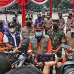 BANDUNG – Badan Nasional Penanggulangan Bencana (BNPB), bersama Pemerintah Kota Bandung membagikan masker di 20 lokasi, Sabtu (19/2/2022). Ke-20 titik tersebut ialah,