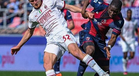 Tommaso Pobage setelah mencetak gol langsung dihalau pemain lawan. (Instagram @acmilan) JAKARTA – AC Milan ditahan imbang 1-1 oleh Bologna di pekan