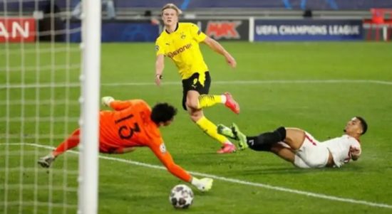 SEVILLA–Erling Haaland mengawal Borussia Dortmund menekuk Sevilla 3-2 dalam leg pertama Liga Champions yang berlangsung di Stadion Ramon Sanchez-Pizjuan, Sevilla, Rabu waktu