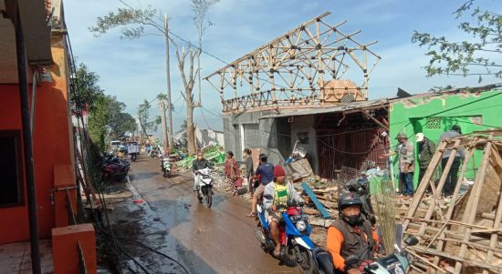 BANDUNG – Angin puting beliung menyapu Ciharalang, Desa Mekarsaluyu Kecamatan Cimenyan, Kabupaten Bandung, Minggu (28/3/2021) sore. Sejumlah bangunan rusak, beberapa orang cedera.