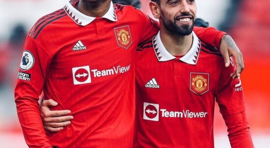 Bruno Fernandes dan Marcus Rashford setelah gol kedua Manchester United atas Manchester City. (Instagram @ man.united) JAKARTA – Manchester United berhasil bangkit
