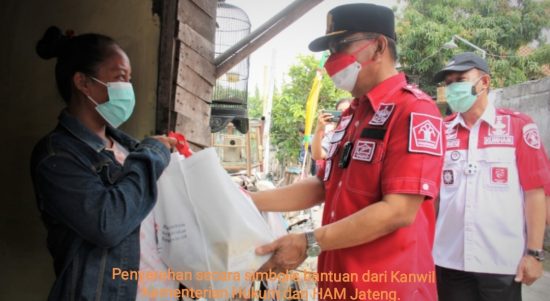 SEMARANG – Kantor Wilayah Kementerian Hukum dan HAM Jawa Tengah kembali memberikan bantuan kepada masyarakat yang terdampak Pandemi Covid-19, Jumat (13/8/2021). Kegiatan