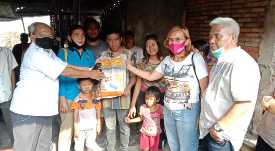 Pengurus SMSI SUMUT menyerahkan sembako ke orang tua Cantika dan Cindy pada Sabtu (5/9/2020).