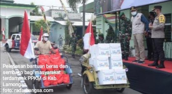 LAMONGAN – Bantuan beras kepada masyarakat terdampak PPKM di wilayah Kabupaten Lamongan, didistribusikan, Kamis (22/07/2021). Dalam sambutannya Bupati Lamongan Dr H Yuhronur