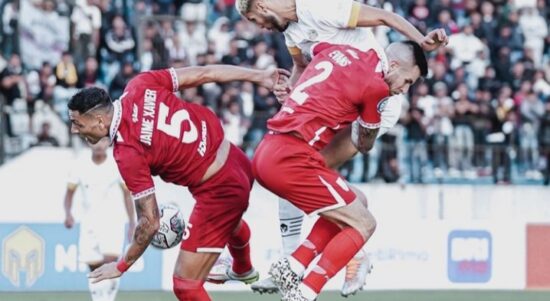 Pemain Dewa United bertempur di babak kedua hingga mengungguli Persis Solo. (Instagram @dewaunited) JAKARTA–Tim Dewa United menang 3-2 di kandang Persis Solo