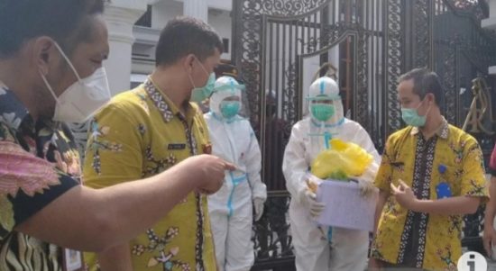 KUDUS–Tim Satgas Covid-19 Kabupaten Kudus, Jawa Tengah, memeriksa pemilik hajatan yang menghadirkan artis ibukota Dewi Persik bersama sejumlah pekerjanya dengan tes usap