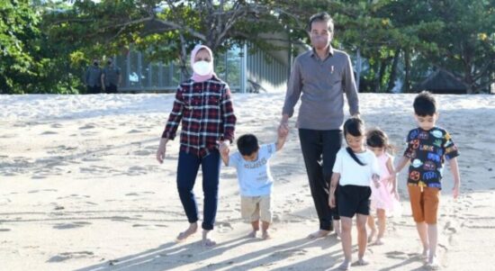 Presiden Joko Widodo berliburan dengan keluarga di pantai sekitaran Nusa Dua Bali. (foto Setpres RI) BALI – Presiden Joko Widodo berliburan dengan