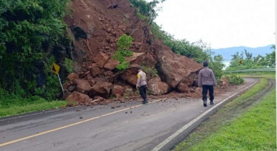 DOMPU – Tanah longsor kembali terjadi di jalan lintas Nanga tumpu dan menutupi hampir seluruh badan jalan raya, Minggu (17/01/21) sekitar pukul