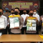 Kapolda Jambi Irjen Pol Firman Shantyabudi menunjukkan barang bukti 19,5 kilogram shabu yang berhasil disita. JAMBI — Polda Jambi kembali berhasil menggagalkan