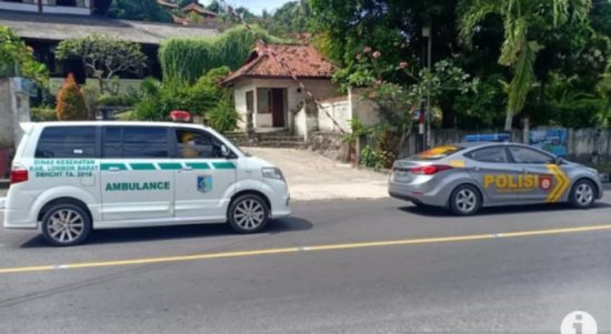 MATARAM–Tim Satuan Tugas Penanganan Covid-19 dari Puskesmas Pemenang, Kabupaten Lombok Utara, Nusa Tenggara Barat menjemput Patel Sagar Sureshbhai, warga negara asal Mumbai,