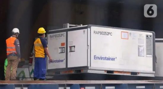 BANDAR LAMPUNG – Vaksin Covid-19 bermerk Sinovac yang didistribusikan dari PT Biofarma, tiba di Provinsi Lampung melalui jalur darat pada Senin (4/1/2021) dinihari pukul 01.27