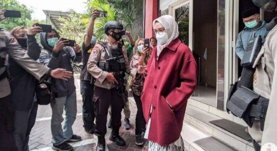 JAKARTA–Bupati Probolinggo Puput Tantriana Sari bersama suaminya yang merupakan Anggota DPR RI Hasan Aminuddin tiba di Gedung Komisi Pemberantasan Korupsi (KPK), Jakarta,