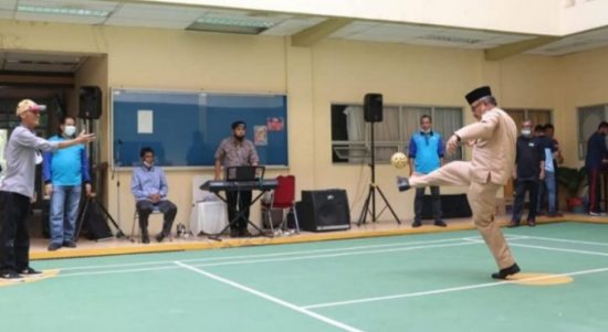 BATAM–Dinas Pemuda dan Olahraga (Dispora) Batam menggelar ekshibisi sepak takraw di lapangan Dispora Batam, Jumat (5/3/2021). Pertandingan persahabatan itu dihadiri Sekretaris Daerah