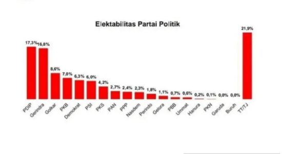 Hasil survei CPCS soal elektabilitas partai politik, Senin (4/9/2023). (CPCS) JAKARTA – Hasil survei Center for Political Communication Studies (CPCS) terbaru menunjukkan