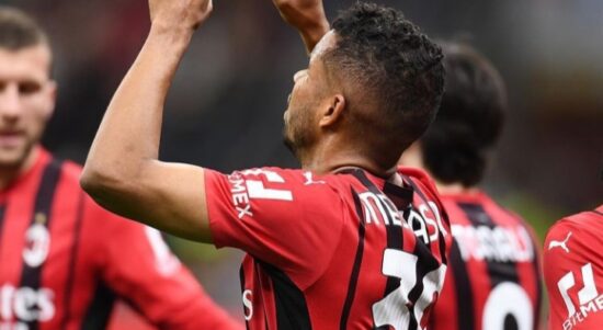 Junior Messias setelah mencetak gol kedua untuk AC Milan. (Foto: @acmilan) JAKARTA–Dua gol yang dilesakkan Rafael Leao dan Junior Messias ke gawang