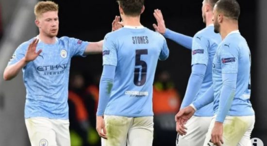 JAKARTA–Manchester City melaju ke perempat final Liga Champions ketika dua gol yang dicetak Kevin De Bruyne dan Ilkay Gundogan mengkaparkan Borussia Moenchengladbach