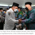 BATAM–Gubernur Kepulauan Riau H. Ansar Ahmad melepas secara langsung sebanyak 449 Jamaah Calon Haji (JCH) Kloter 01 melalui Embarkasi Batam, di Aula