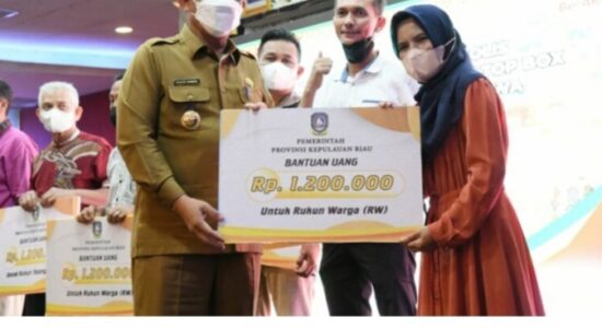 BATAM–Gubernur Kepulauan Riau H Ansar Ahmad menyerahkan bantuan insentif RT/RW dan Posyandu se Kota Batam pada Selasa (21/6/2022). Total nilai bantuannya Rp6,78