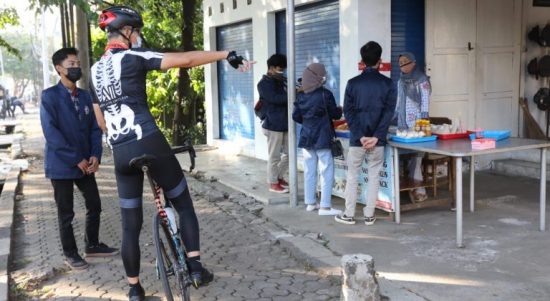 SEMARANG–Sejumlah mahasiswa Politeknik Negeri Semarang (Polines) tampak berkeliaran dengan jaket almamater, Sabtu (31/7/2021) pagi. Mereka mendatangi satu per satu pedagang kaki lima
