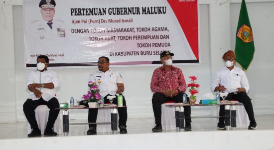 NAMROLE– Gubernur Maluku Murad Ismail menyerahkan beberapa jenis bantuan kepada masyarakat Kabupaten Buru Selatan (Bursel) saat melakukan kunjungan kerjanya, Kamis (5/11/2020). Rilis