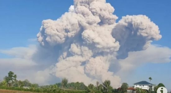 KABANJAHE – Gunung Sinabung kembali meletus dan mengeluarkan awan panas guguran (APG) dengan jarak luncuran hingga 4.500 meter ke arah tenggara. Tinggi