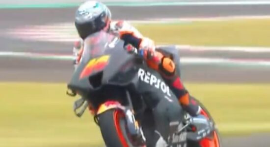 LOMBOK TENGAH–Pol Espargaro menegaskan kecepatan Honda RC213V, yang mengalami perubahan radikal, di puncak catatan waktu pebalap pada hari pertama tes pramusim MotoGP