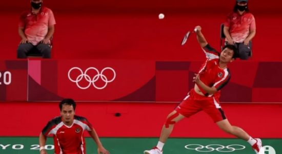 TOKYO–Ganda putra Hendra Setiawan/Mohammad Ahsan berhasil mengatasi tekanan pasangan Aaron Chia/Wooi Yik Soh dalam penampilan kedua mereka di babak penyisihan Grup D